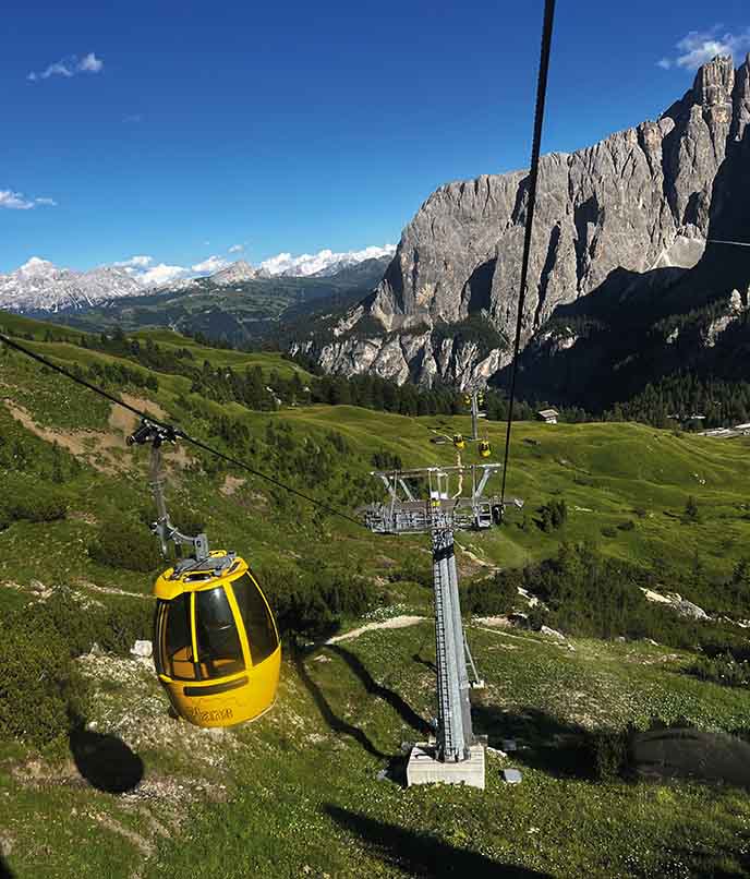 Vale subir aos mirantes do Piz La Ila, onde o Club Moritzino (2.100 m), comandado por Alexandre Craffonara, combina DJs e pratos e vinhos em alto estilo. A gôndola parte do centro de La Villa, cortando o céu em uma inclinação vertiginosa. Do terraço, veem-se o Vale de Alta Badia, o Gardenaccia e o Maciço do Fanes, a base para trilhas, bike, esqui e parte do circuito Sellaronda.
