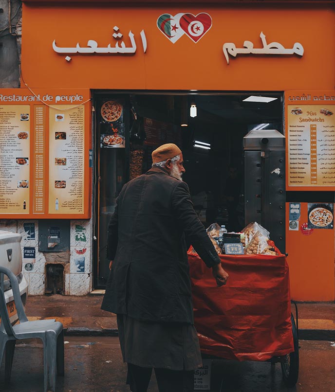 A primeira semana foi marcada por frio e umidade. As ruas molhadas exigiam atenção. Guiado pelo cheiro de pão e café, cheguei a uma praça acolhedora, perto de onde fiquei hospedado. A Medina, com seus souks e vielas, é viva e labiríntica. Um lugar onde os séculos sussurram. Não vou mentir: a comida é o que primeiro me move numa nova cidade. Não me interesso por monumentos e pontos turísticos lotados. É nos pequenos mercados e bancas de rua que encontro a essência do lugar. Neles a minha timidez se dissolve ‒ muitas vezes por necessidade, e quase sempre pela fome.