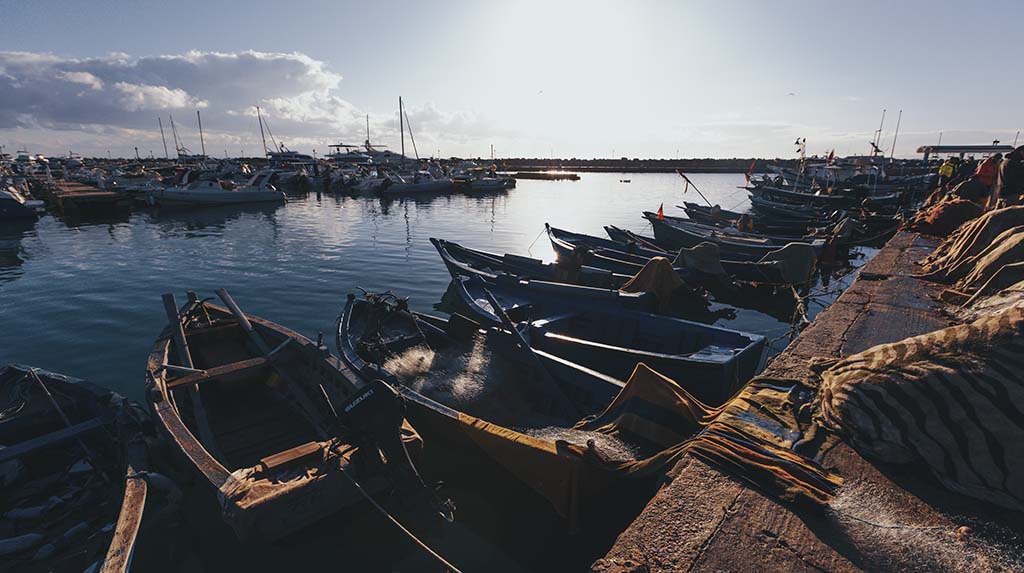 Barcos de pesca ancorados em Sidi Bou Said