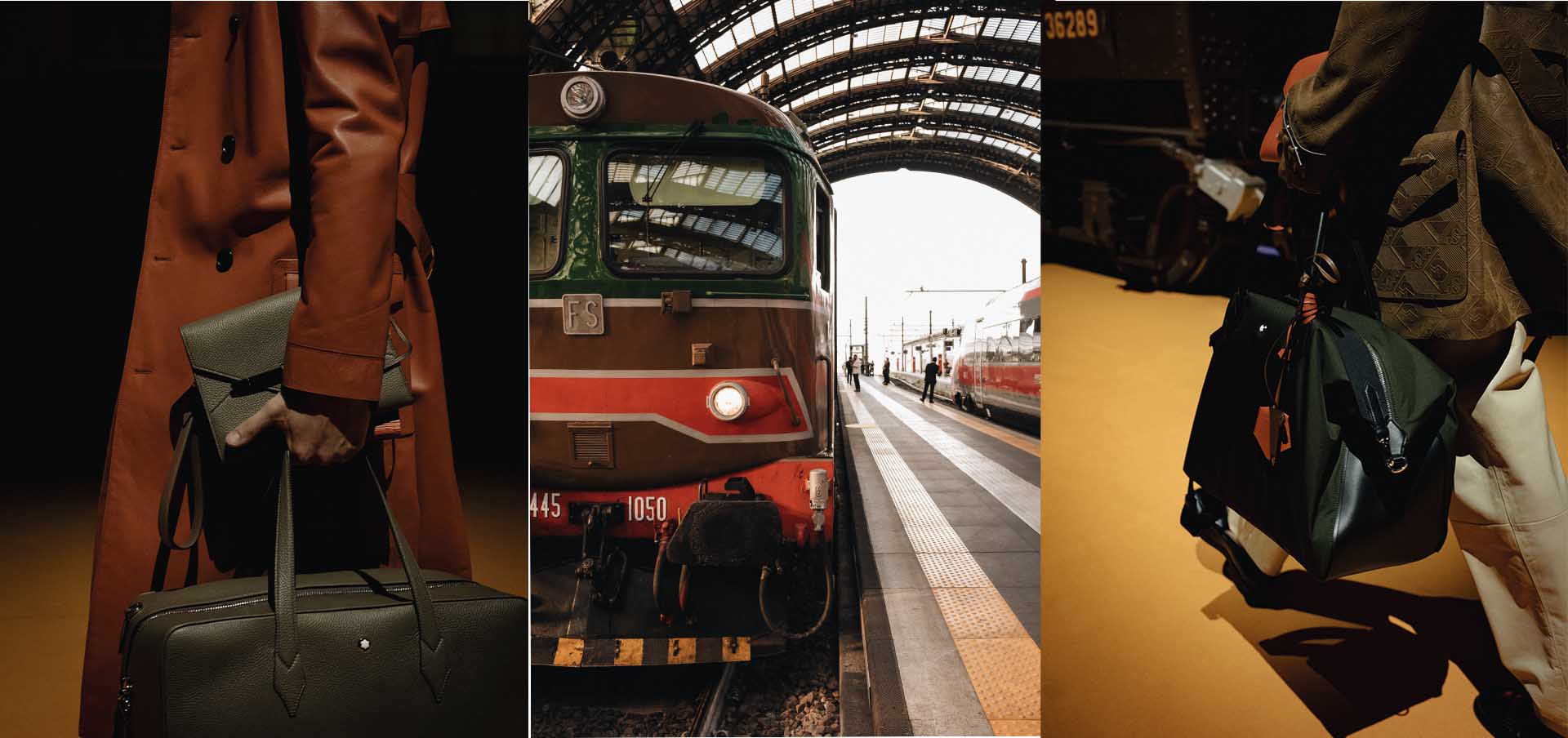 Após a exibição do filme da campanha, algo que ninguém esperava veio à tona: a primeira apresentação de moda da Montblanc. Os modelos emergiram dos vagões ao som de uma música dramática, usando jaquetas de couro que reimaginam, em forma e função, a escrivaninha do escritor com bolsos para os icônicos tinteiros, cadernos, costuras inspiradas em folhas pautadas e tudo que envolve o universo da escrita. Criadas por Marco Tomasetta, diretor artístico da Montblanc, as peças integram uma coleção cápsula que faz da escrita algo que possa ser usado no dia a dia, também apresentado nos novos modelos de bolsa e malas de couro da marca.