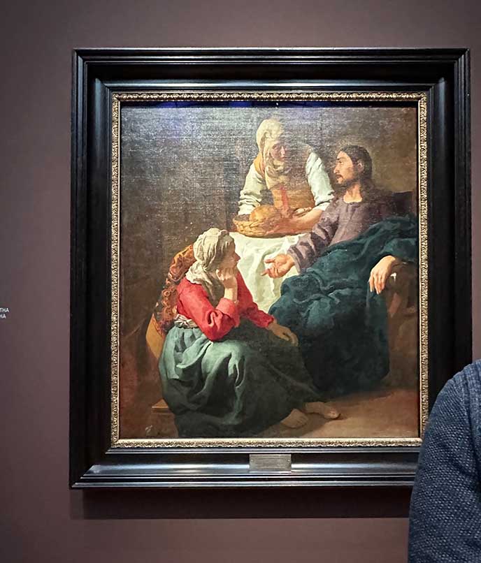 É praticamente certo que Vermeer tenha se inspirado em outros pintores de gênero como Jan Steen – meu terceiro pintor preferido do Séc. 17, depois de Vermeer e Rembrandt – ou Gerald ter Borch. Enquanto Steen, que viveu parte da vida em Delft, provoca com a anedota e a ironia, Vermeer, em começo de carreira, produziu histórias religiosas e mitológicas como “Cristo na Casa de Maria e Martha”, do National Galleries of Scotland, de Edimburgo e “Santa Praxedes”, do The National Museum of Western Art, de Tóquio. Os quadros de Vermeer, no entanto, desafiam a teoria de um artista de interiores em constante formação e desenvolvimento.