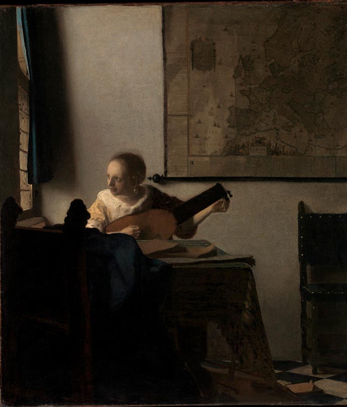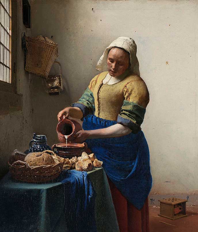 Suas personagens não fazem barulho. Estão quase quietas, focadas em si mesmas, e raramente interagem. O modo contemplativo domina as cenas. Ler uma carta, receber uma mensagem, servir leite ou produzir música. O pintor capta o momento exato em que a personagem teve um valioso insight que ainda não será compartilhado com o mundo, dando espaço para todos nós, espectadores, nos identificarmos com a cena enquanto nos encantamos com a maestria de sua técnica.