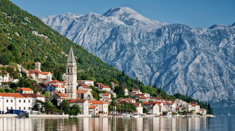 Encostada à baía em forma de fiorde, a cidade velha de Kotor se espelha nas águas