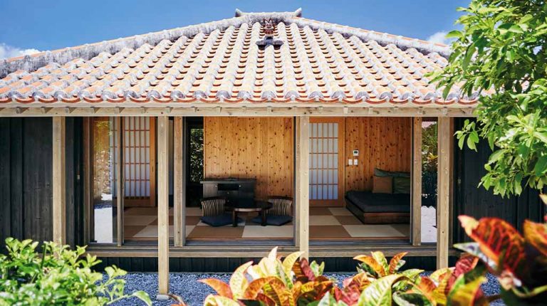 A poucos minutos de barco de Okinawa, a Ilha de Taketomi, habitada por apenas 350 pessoas, preserva o ritmo de um Japão quase intocado. É nesse cenário que o Hoshinoya Taketomi recria, com rigor e sensibilidade, uma vila tradicional: telhados de cerâmica vermelha, muros baixos de pedra e pátios cobertos de areia coralina. Cada uma das vilas é um refúgio silencioso, aberto à luz e às brisas do Pacífico, com interiores que equilibram tatames, madeira e banheiras fundas de imersão.