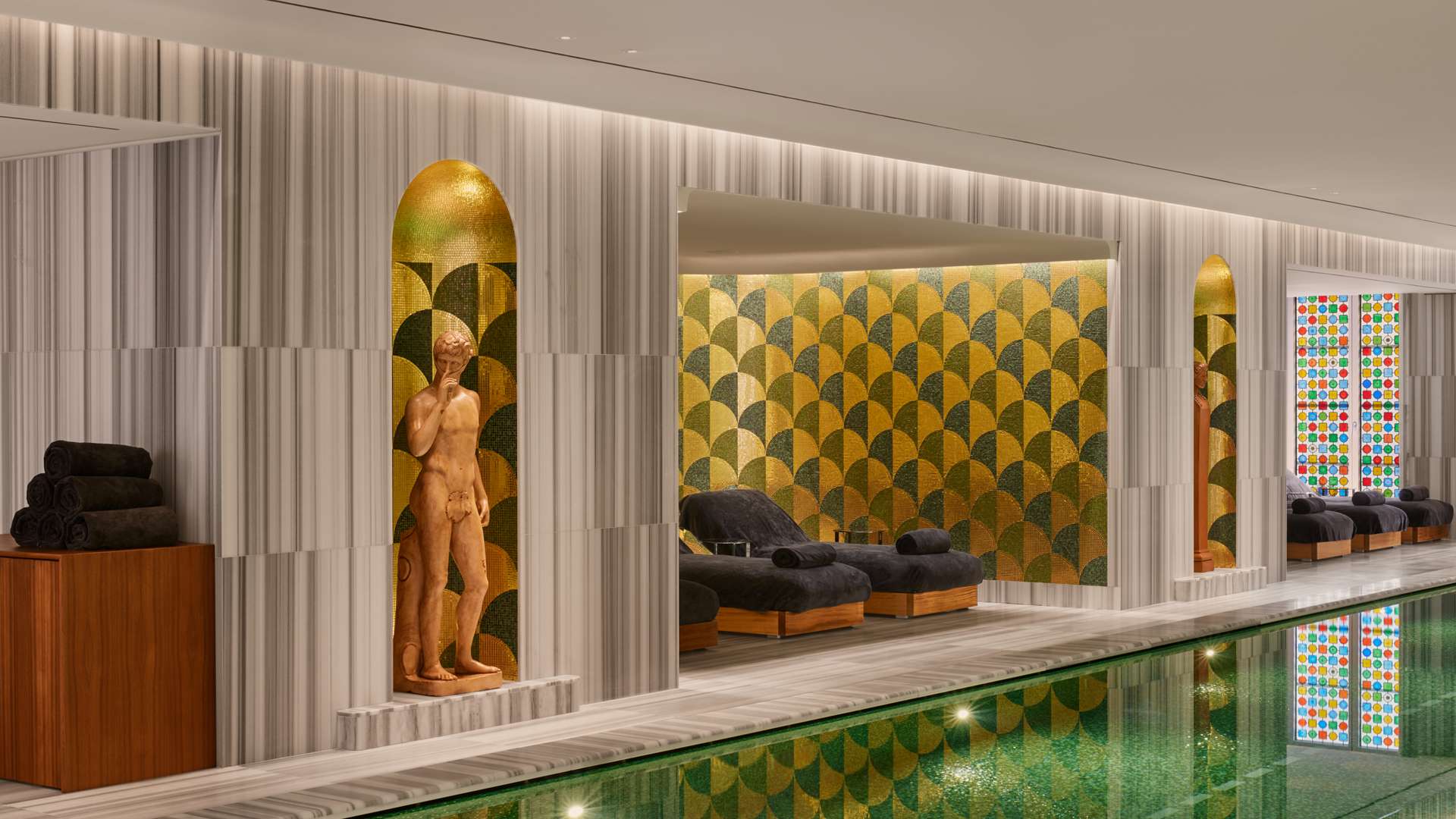 O novo hotel da grife Bulgari em Roma também oferece um spa opulento, com piscina interna de 20 metros, além de oito salas de tratamento e um centro de fitness e salão de beleza.