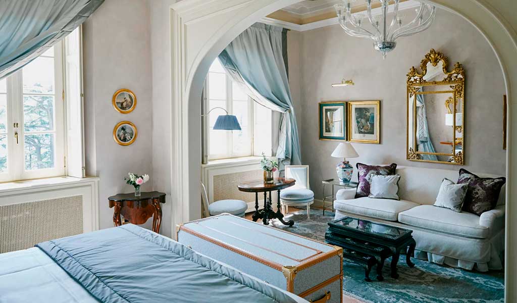 E todas as suítes do Passalacqua são únicas e sublimes, cheias de detalhes requintados, banheiros em mármore e todo o conforto que se espera de um hotel histórico eleito o melhor do mundo.