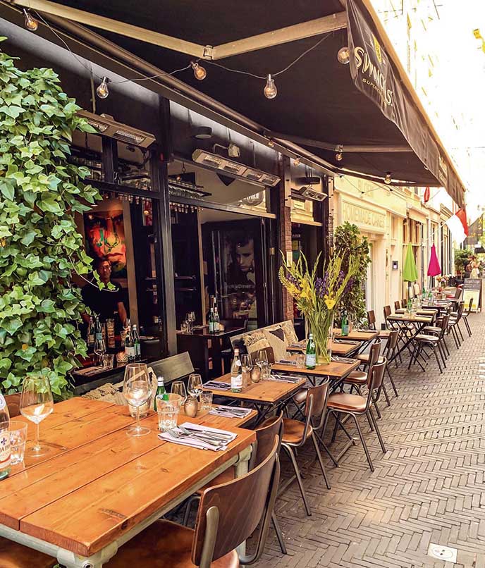 Ao longo das ruas Frederikstraat e Denneweg, há muitos estabelecimentos com mesas na calçada, ideais para apreciar a atmosfera tranquila e sofisticada da região. O Wox e o Zheng são os meus preferidos pela fusão de culinária asiática e ingredientes locais. O 6&24, o Elea e o De Basiliek são ótimas pedidas para quem quer experimentar o lado mais moderninho da cidade.