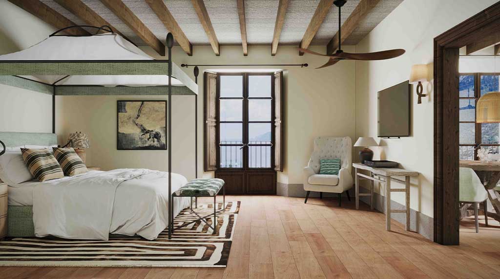 Embora manter o caráter histórico da propriedade rural tenha sido a premissa do projeto, objetos de design que priorizam materiais locais foram utilizados para conferir contemporaneidade. Prática essencial na coleção de sir Richard Branson, a sustentabilidade é um fator relevante também no Son Bunyola, com ações como reutilização de água e energia eficiente, além da contratação de locais para o staff do hotel, entre outras.
