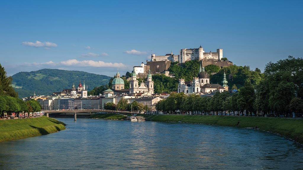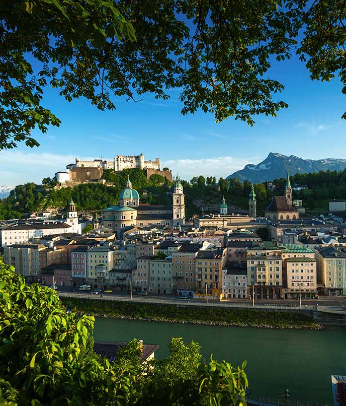 Marcada por prédios históricos de arquitetura barroca, Salzburgo é cortada pelo Rio Salzach, que a divide entre a Cidade Antiga,