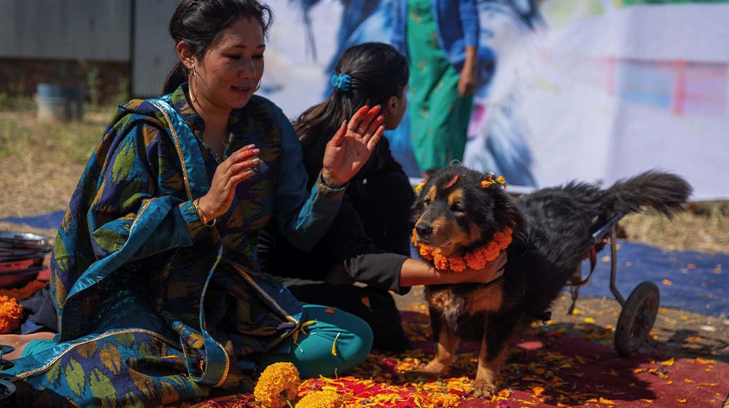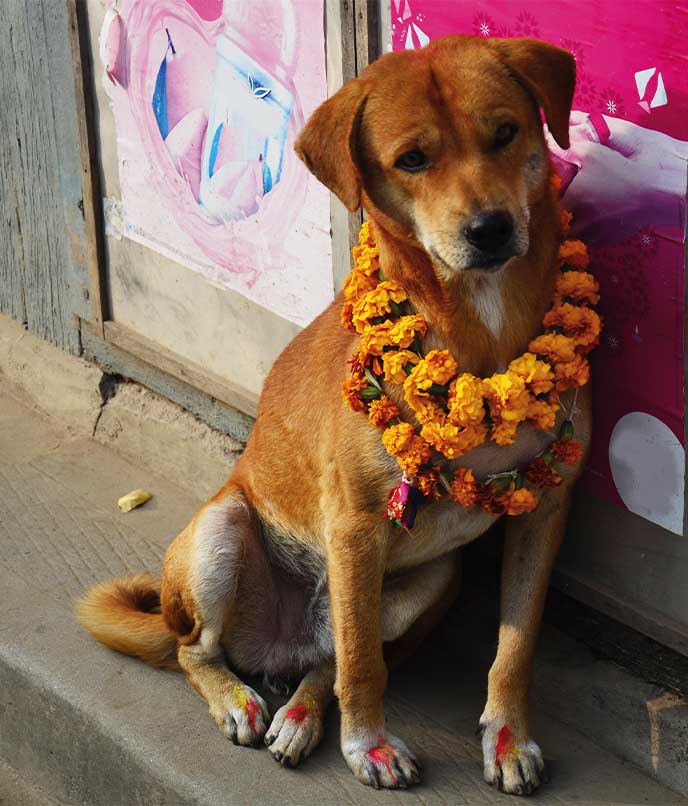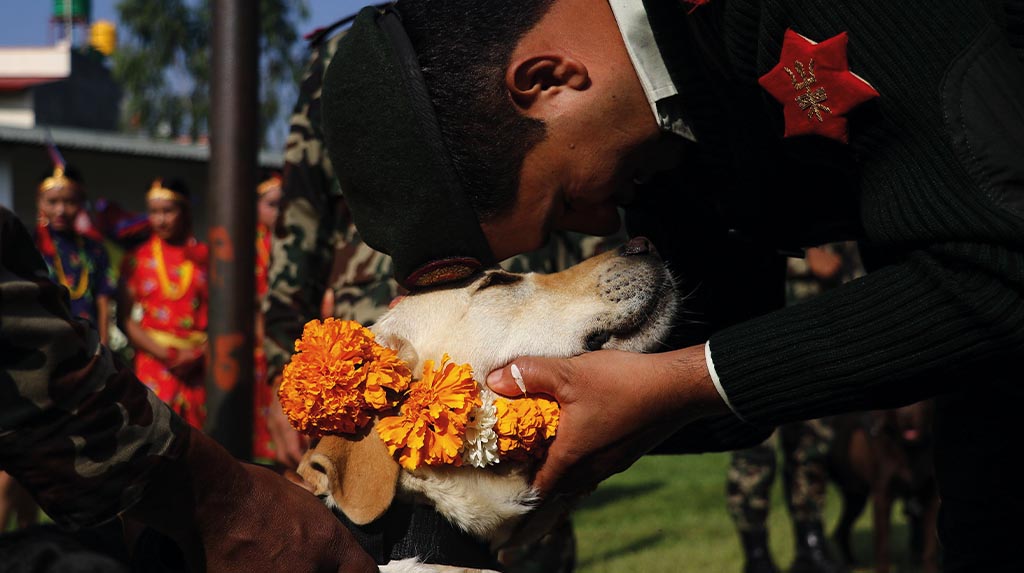 À primeira vista, pode soar inusitado dedicar uma data à celebração de cães durante um festival sagrado. No entanto, no Nepal, essa iniciativa faz parte de uma tradição ancestral que transcende a relação cotidiana entre humanos e animais. O Kukur Tihar, o “dia dos cães”, é o segundo dos cinco dias do Tihar, um festival hindu que guarda semelhanças com o Diwali indiano (conhecido também como o “festival das luzes”). Na cosmologia hindu, os cães são considerados mensageiros de Yamaraj, o deus da morte, e, por isso, recebem homenagens especiais como uma forma de reverência e proteção espiritual.