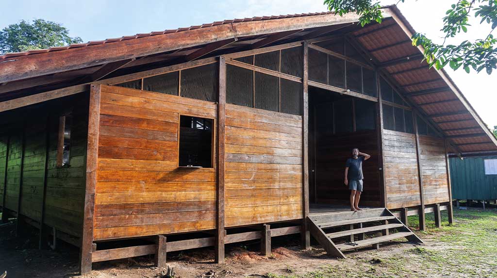 O Tambor, inclusive, foi o destino final da Visitação Ribeirinha, uma expedição inédita da Katerre. Ao todo, foram mais de 800 km navegados e cinco comunidades visitadas ‒ Bom Jesus do Puduari, Mirituba, São Lázaro do Jaú, Tambor e Cachoeira ‒, em busca de acompanhar de perto o andamento do projeto. É um processo longo e desafiador, mas Ruy percebeu algo valioso: é preciso agir. “É tudo de grão em grão, né? É um processo novo. Mas a gente tem que estar sujeito a isso, querer o amadurecimento de todos os processos”, diz, enquanto escuta, com calma e atenção, as demandas específicas de cada povo. “Só assim a gente consegue de verdade fazer uma geração inteira, duas gerações inteiras, para tentar mudar alguma coisa.”