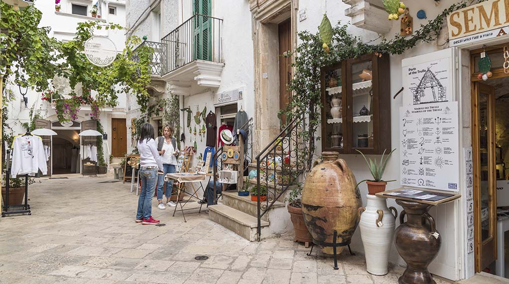 Seus icônicos trulli — casinhas cônicas de pedra branca — formam um cenário de conto de fadas e são Patrimônio da UNESCO. Segundo a lenda, essas construções surgiram na Idade Média como um “truque” para evitar impostos altos sobre moradias permanentes, já que podiam ser rapidamente desmontadas. Caminhar por suas ruas é como voltar no tempo. E não deixe de explorar as lojinhas de artesanato local, especialmente os tecidos jacquard em linho — peças únicas e elegantes que são especialidade da região.