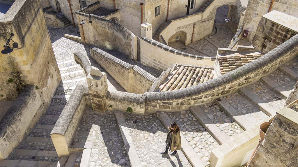 Rumo à Basilicata, descobrimos Matera, cidade esculpida em pedra calcária sobre uma montanha isolada por vales que competem pelo título de mais antiga da Europa, e cenário de filmes como 007 — No Time to Die.