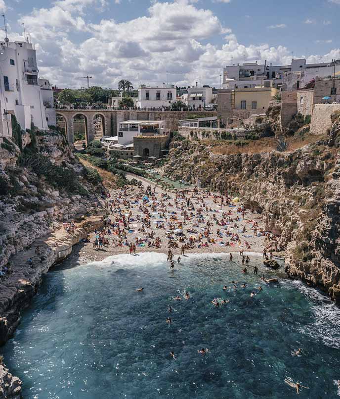 Imagine almoçar spaghetti ai frutti di mare enquanto o azul-turquesa do Adriático brilha sob o sol. Essa vila pitoresca, com casinhas penduradas sobre falésias e ruas de paralelepípedos, é um convite ao dolce far niente. Um dos melhores programas é simplesmente caminhar à beira-mar, explorando esconderijos à beira dos penhascos e tirando fotos das águas cristalinas. Saiba mais no site oficial de turismo de Polignano a Mare.