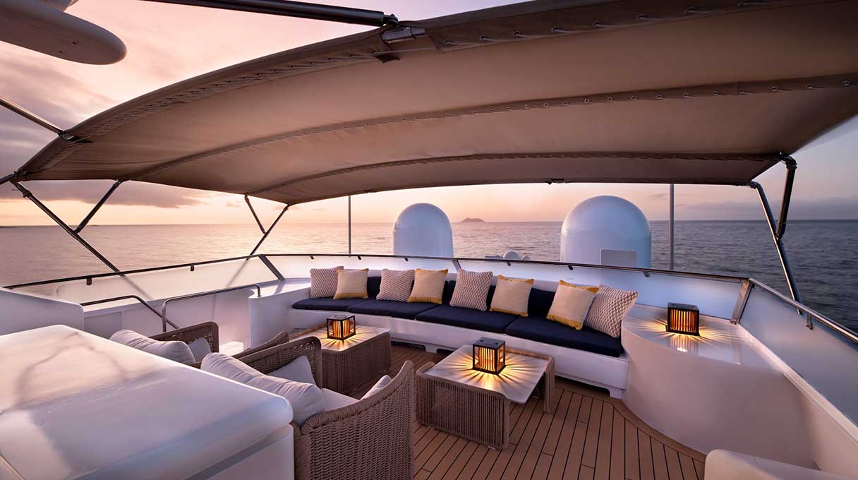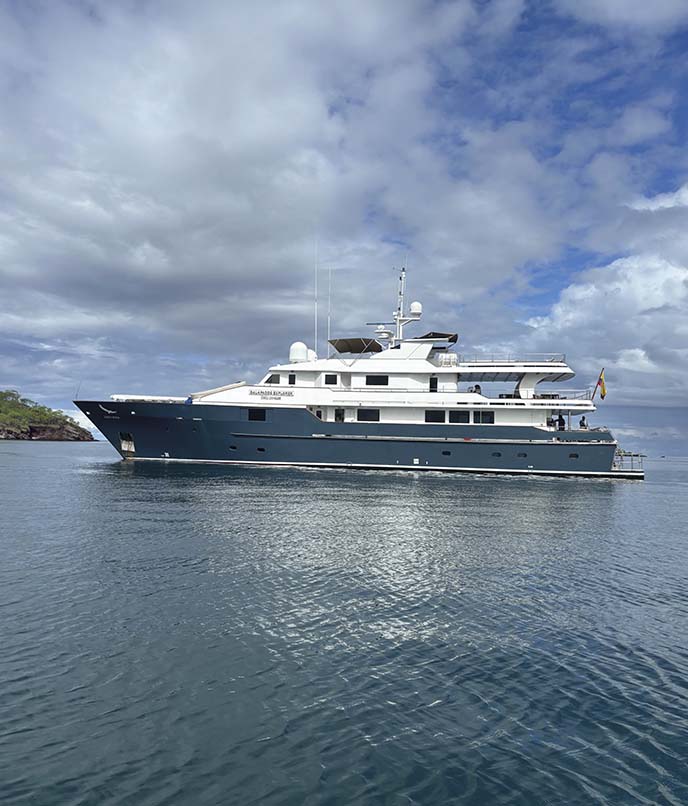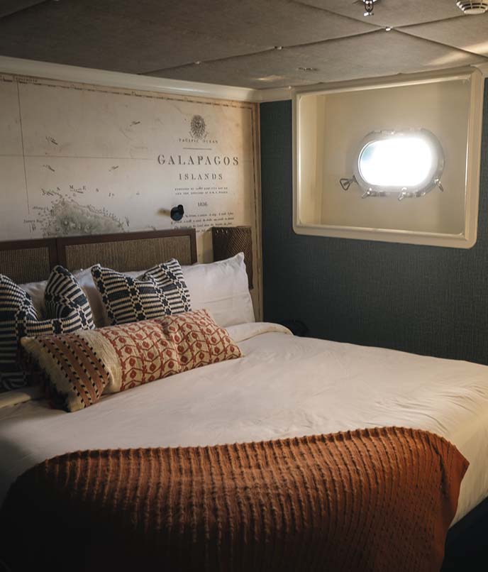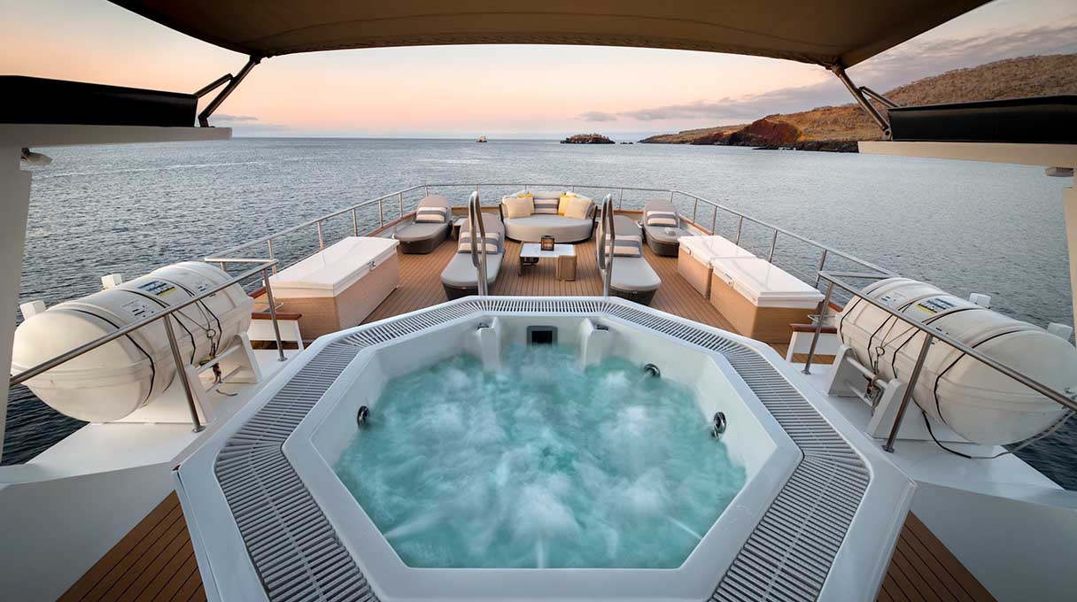 Embarco no novíssimo &Beyond Galapagos Explorer, minha casa flutuante nos sete dias seguintes, para desbravar o oeste selvagem das ilhas. Com 124 pés (aprox. 38 m) de extensão, o barco abriga somente seis charmosas cabines, uma jacuzzi com vista para o horizonte, refeições criativas que celebram os sabores locais, uma equipe acolhedora e um guia naturalista, pronto para desvendar os mistérios do arquipélago: uma experiência intimista que combina perfeitamente com o destino.