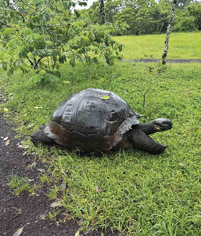 Desde os anos 1960, o Centro de Pesquisa Charles Darwin se esforça para aumentar sua população nas ilhas, enquanto a Reserva El Chato, na parte montanhosa, abriga inúmeras delas. Nessa última, tive o privilégio de chegar bem perto desses seres, espantada ao perceber seu tamanho incomum, de até 250 kg.