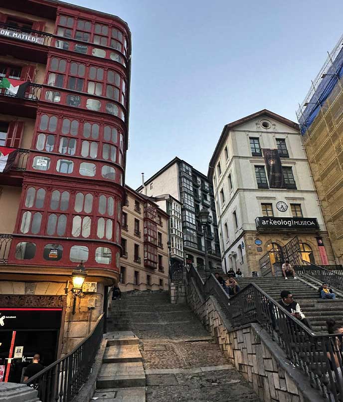 Nas ruas estreitas do Casco Viejo, o coração histórico, a atmosfera de Bilbao se manifesta diariamente. Copos nas mãos, conversas cruzadas e risadas misturadas ao som de clássicos que vazam das portas de bar com pinta de boteco. Todas as noites, com um movimento intenso nos finais de semana, os jovens ocupam o espaço público de forma espontânea e barulhenta. Copos passam de mão em mão, grupos se formam e se desfazem, com a socialização em movimento, entre as portinhas dos bares. Nesse contexto, a cena LGBT da cidade não se organiza em guetos rígidos, se misturando naturalmente ao cotidiano urbano em um ambiente fluido, inclusivo e surpreendentemente acolhedor.